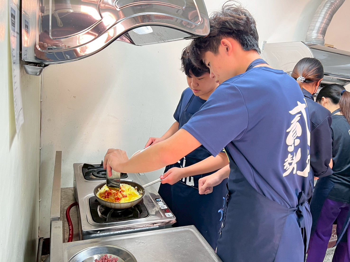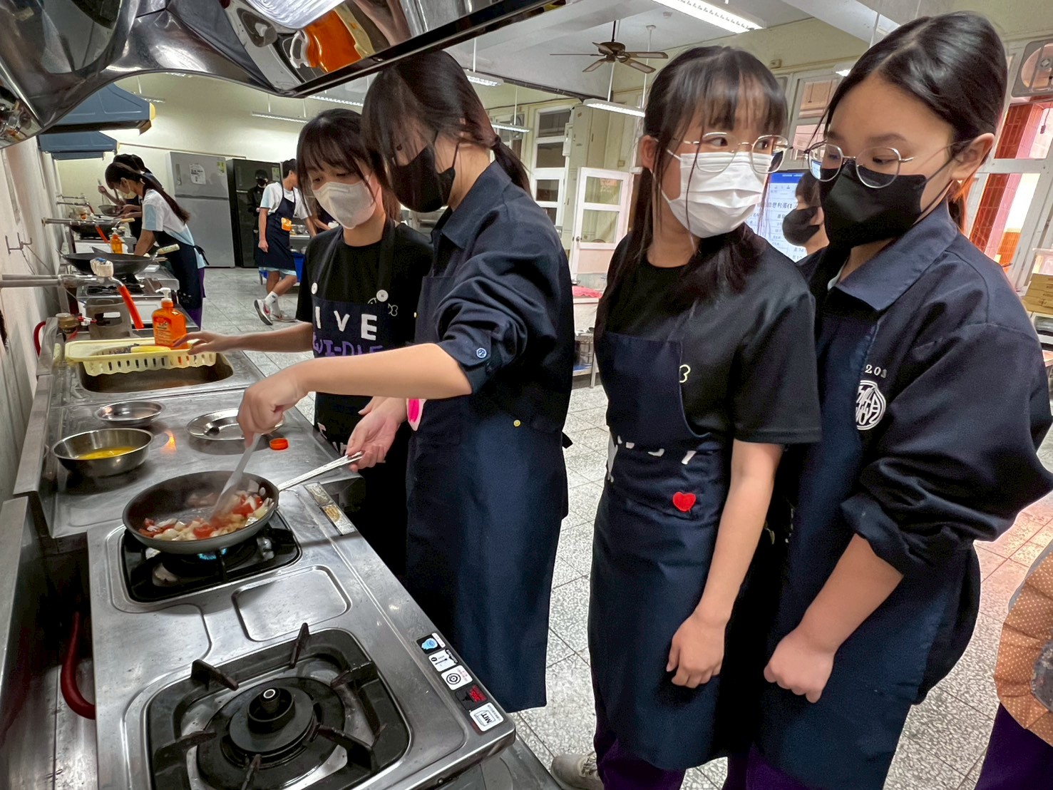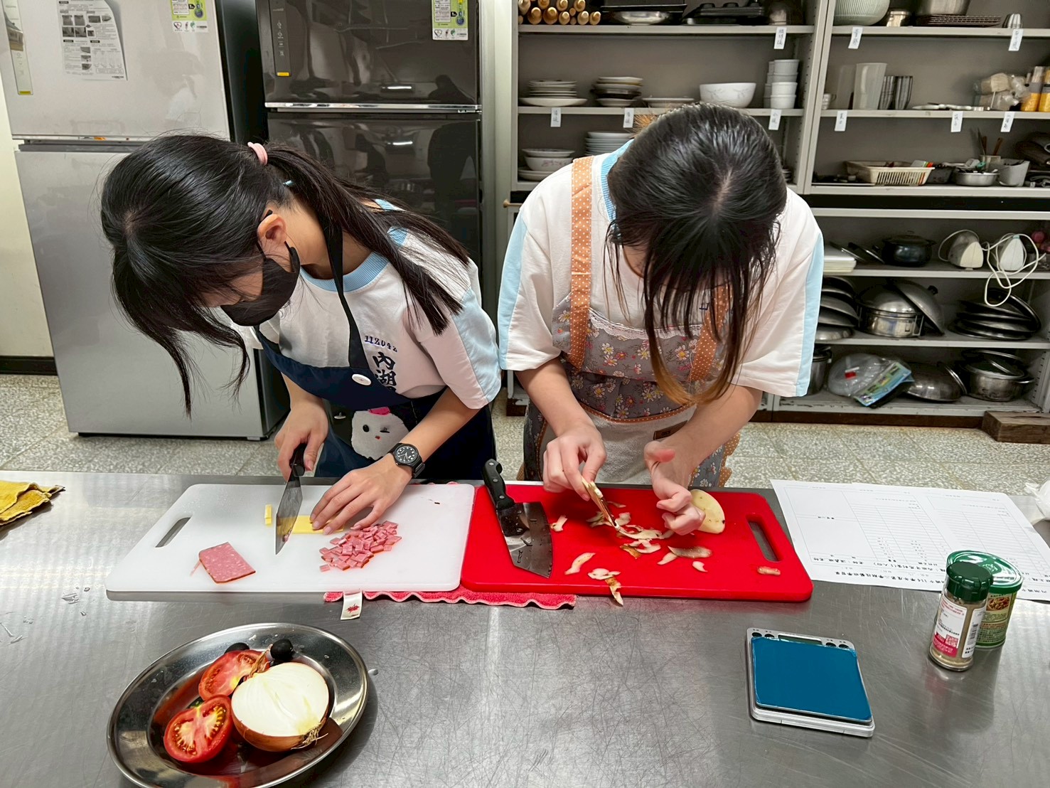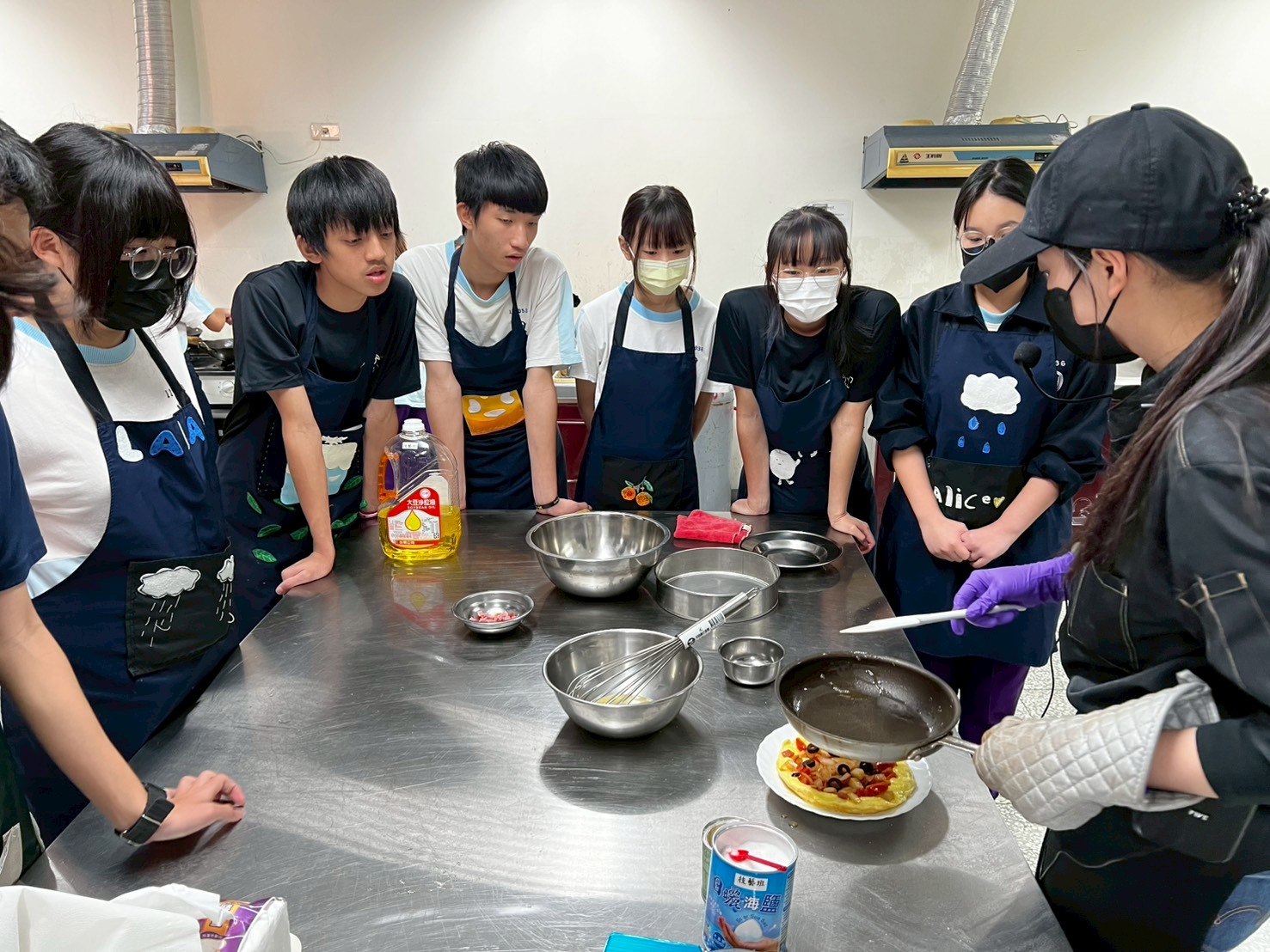 學生分組,在老師的示範與指導下,體驗製做美味的餐點。